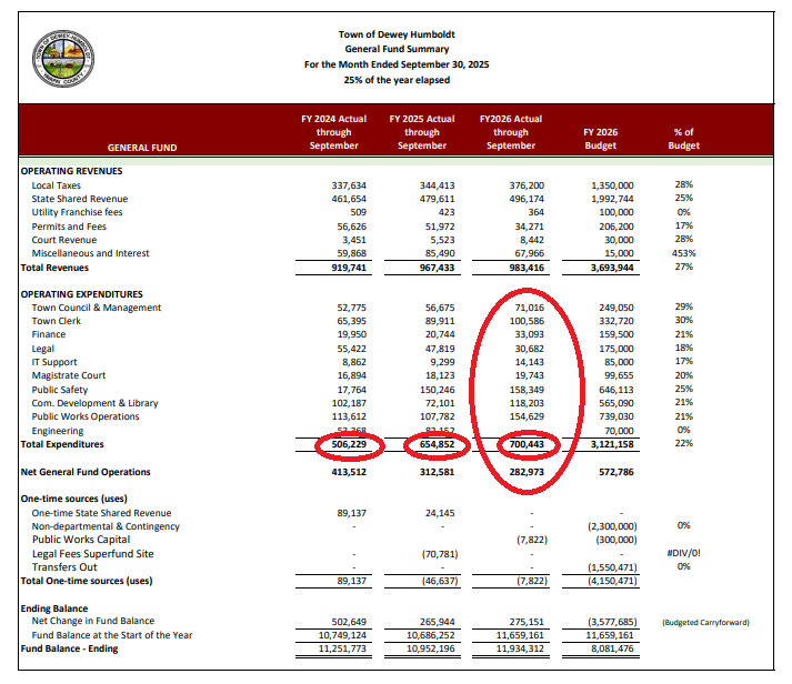 Note: Financial statements for the current fiscal year will not be available until June/July; however, projections indicate that this will be the first time in 14 years that the Town is on track to use savings to cover expenditures not benefitting the citizens themselves.