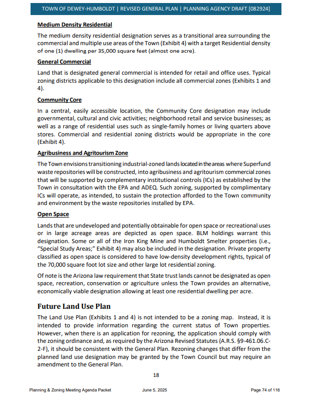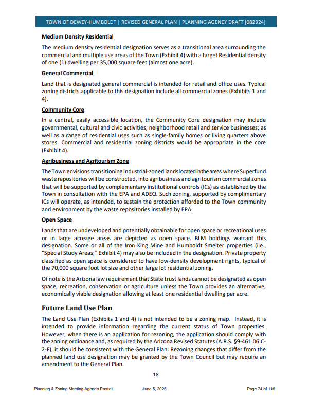 The June 5, 2025 meeting had a land use map in the General Plan with: