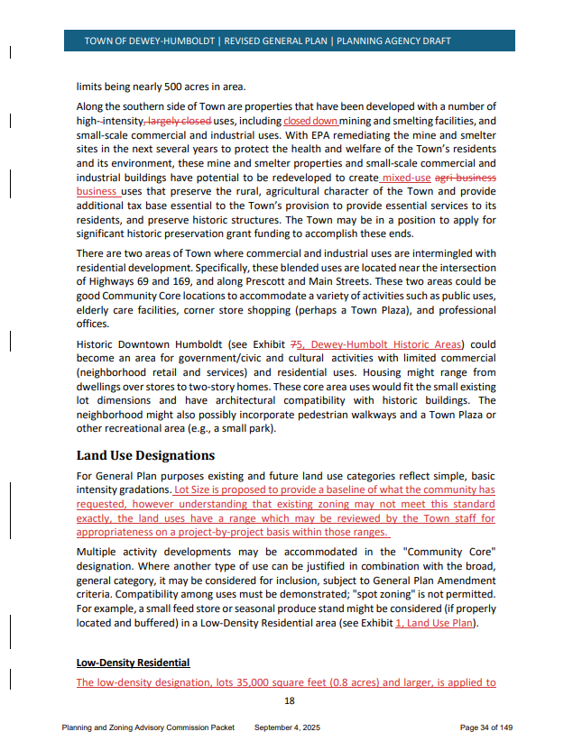 The June 5, 2025 – P and Z meeting had Community Core in the General Plan with: