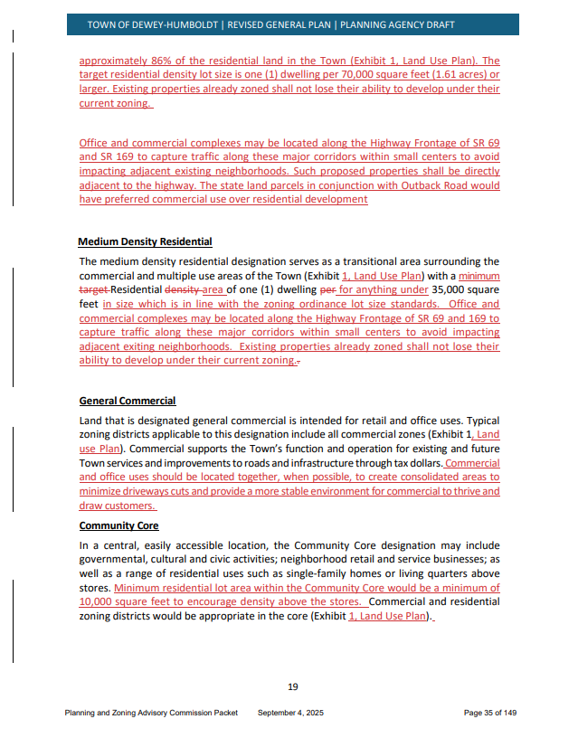 The September 4th, 2025 – P and Z meeting had different wording for Community Core in the General Plan that changes density: