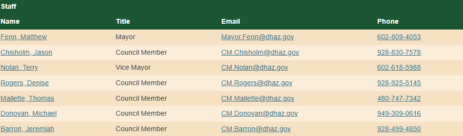DanField@dhaz.gov – Town Manager Mayor.Fenn@dhaz.gov